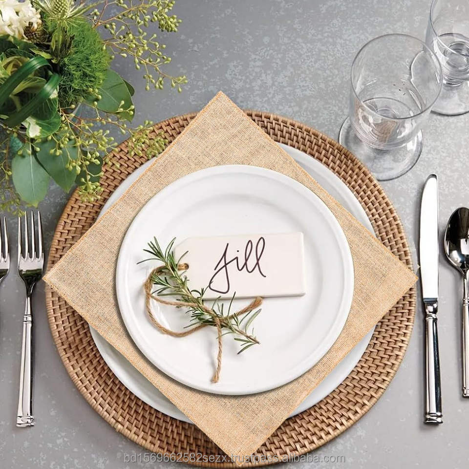 ผ้าปูโต๊ะสี่เหลี่ยมผืนผ้าจากผ้ากระสอบป่าน 100% ขนาด 6x6 นิ้ว อเนกประสงค์ เป็นมิตรกับสิ่งแวดล้อม ย่อยสลายได้ ใช้ตกแต่งโต๊ะอาหารสไตล์ฟาร์มเฮาส์ หรือใช้ในงานจัดสวน
