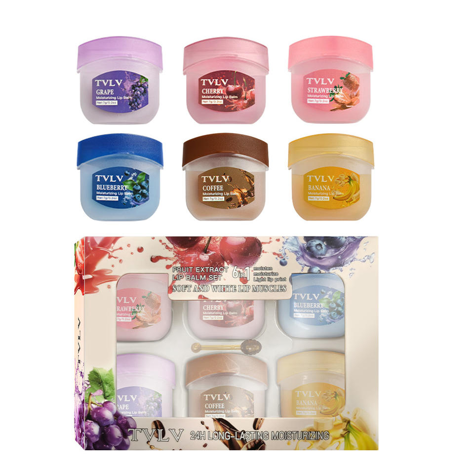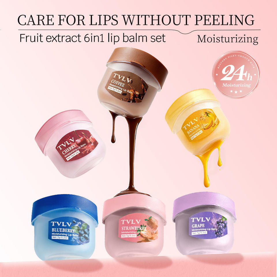 ชุดลิปบาล์มผลไม้ 6 รสชาติ - บำรุงริมฝีปากในฤดูหนาว ให้ความชุ่มชื้นและเติมน้ำให้ริมฝีปาก ช่วยฟื้นฟูริมฝีปากแห้ง
