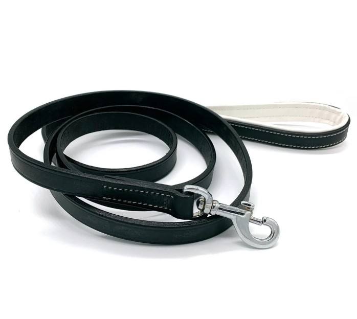 สายจูงสุนัขหนังแท้ยาว 6 ฟุต พร้อมหูจับบุนวม หนังสีดำ