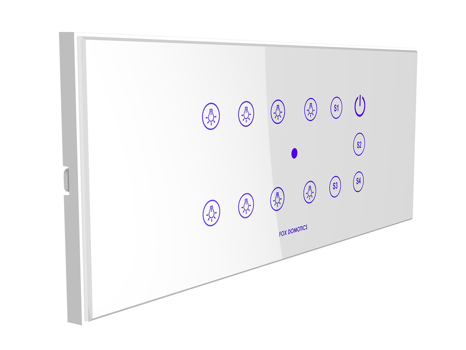 สวิตช์สัมผัสอัจฉริยะ 6 ช่อง 8 ปุ่ม ยี่ห้อ Fox Domotics ควบคุมด้วยระบบสัมผัสแบบ Capacitive รองรับการสั่งงานด้วยเสียงผ่าน Google Alexa เชื่อมต่อ Wi-Fi ทนทาน