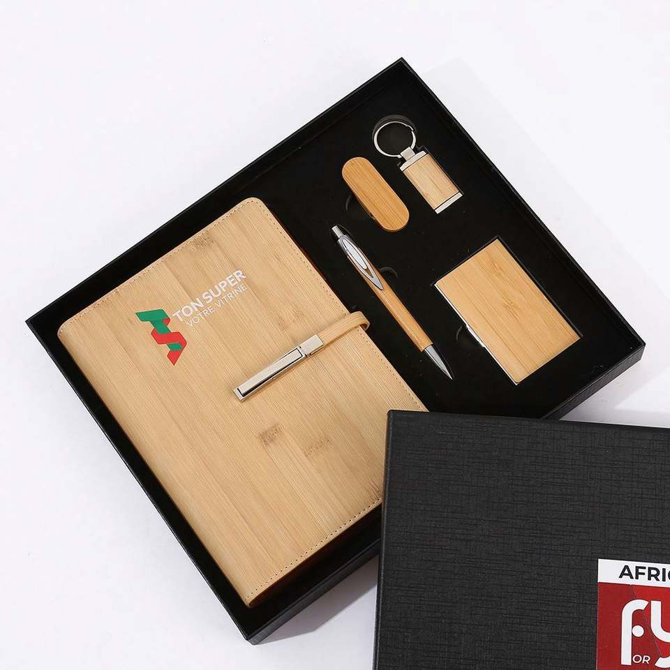 ชุดของขวัญสมุดกระดาษคราฟท์สำหรับธุรกิจสำนักงานแบบกำหนดเอง6ใน1พร้อมโลโก้อุปกรณ์ไม้ไผ่