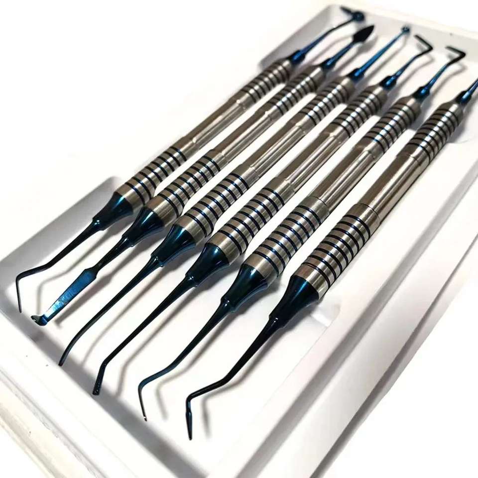 ชุดเครื่องมือทันตกรรมสแตนเลส 6 in 1 สำหรับงานอุดฟันด้วยเรซินคอมโพสิต พร้อมอุปกรณ์ขูดและอัดเรซิน ชุดดูแลสุขภาพช่องปาก