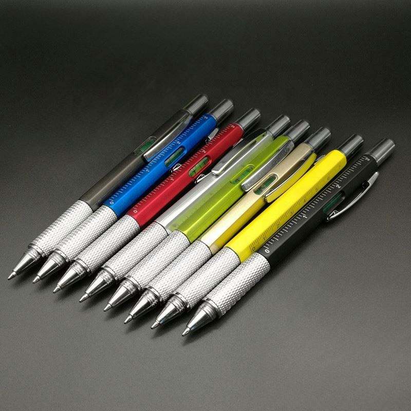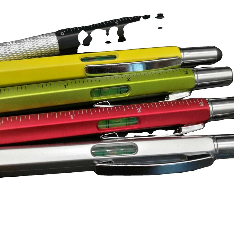 ปากกาอเนกประสงค์ 6 in 1 - ปากกาไขควงอเนกประสงค์พร้อมไม้บรรทัดและระดับน้ำสำหรับใช้ในบ้าน สำนักงาน และงาน DIY