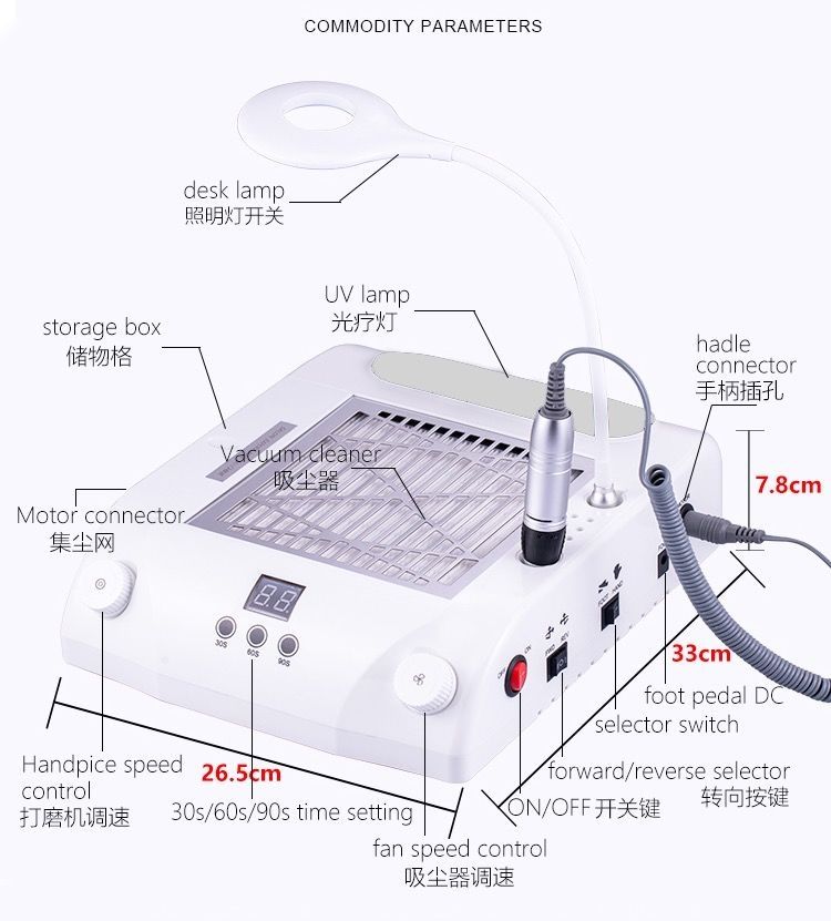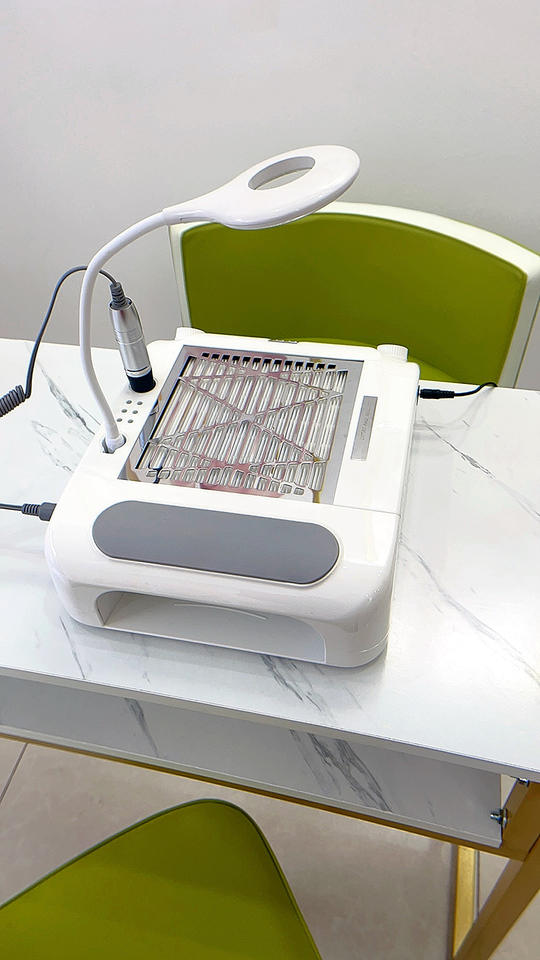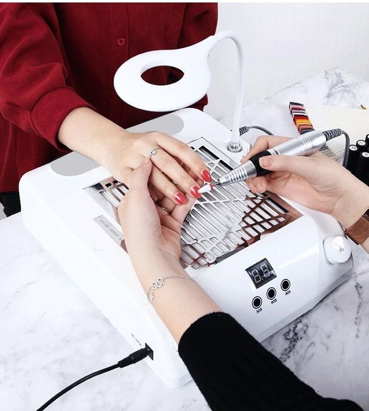 ระบบเครื่องเจียรเล็บมืออาชีพ 6-in-1 พร้อมพัดลมดูดฝุ่น หลอดไฟ และปลั๊กแบบ US/UK ใช้ได้กับการถอดเล็บอะคริลิค ชาร์จไฟได้