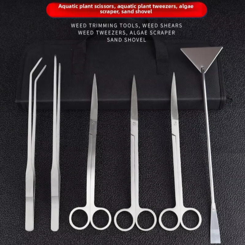 ชุดเครื่องมือตู้ปลาทำจากสแตนเลส6ใน1ชุดกรรไกรแหนบขูดสาหร่ายพลั่วทรายถังปลาอุปกรณ์ทำความสะอาดโรงงาน