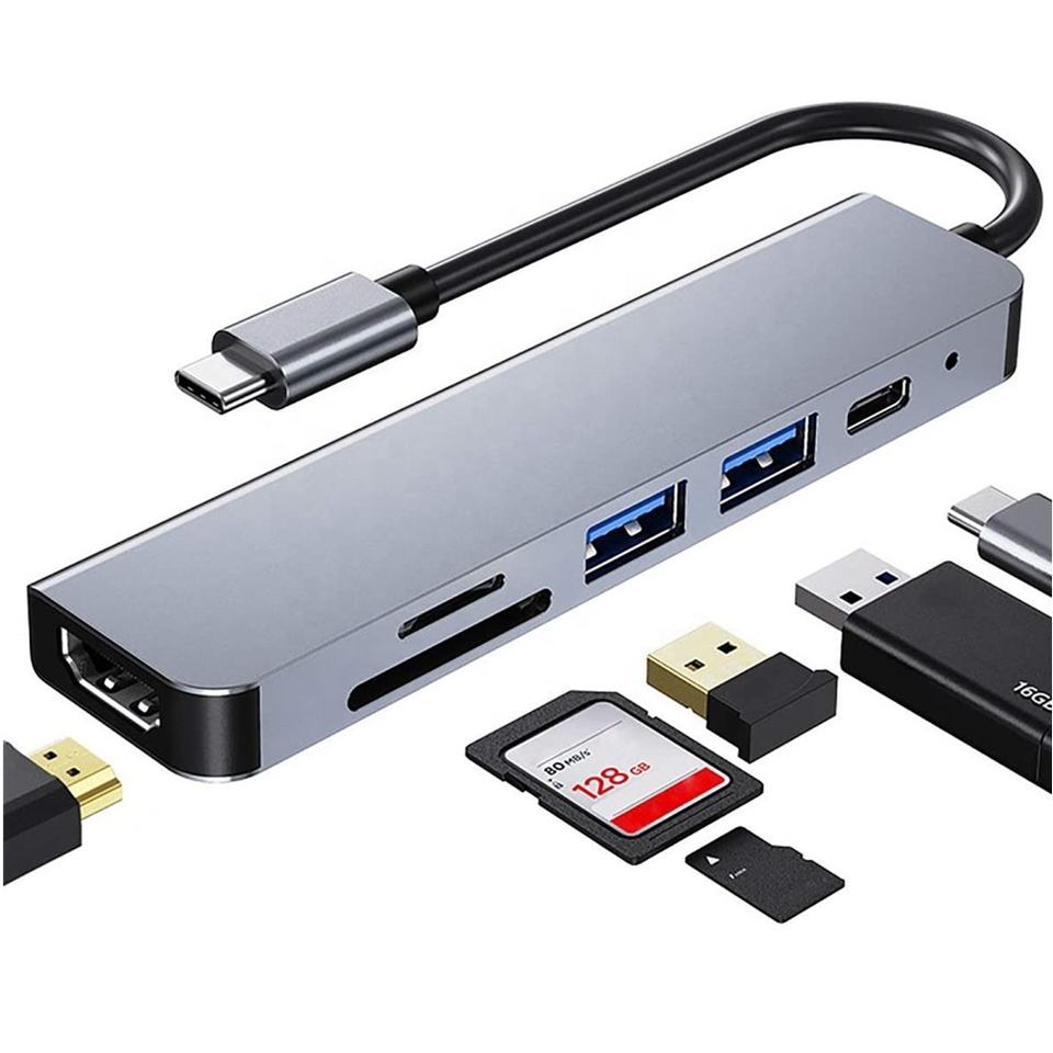 6 In 1 USB Type C 4K HDMI Hub พร้อม2 USB-A ,PD Charge และ Tf/sd Card Reader สำหรับ MacBook Pro และ iPad Pro และอื่นๆ