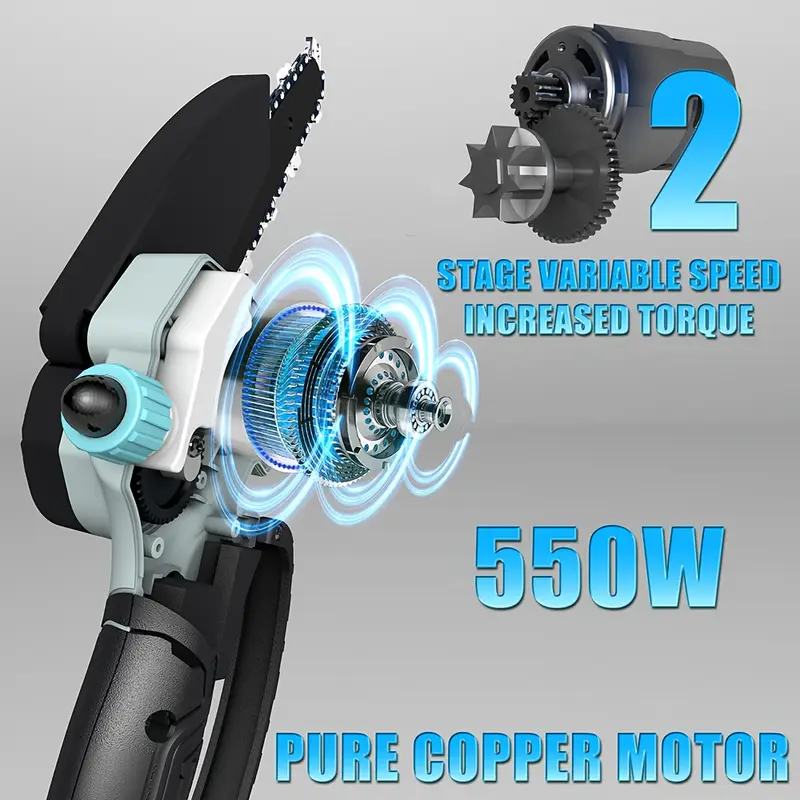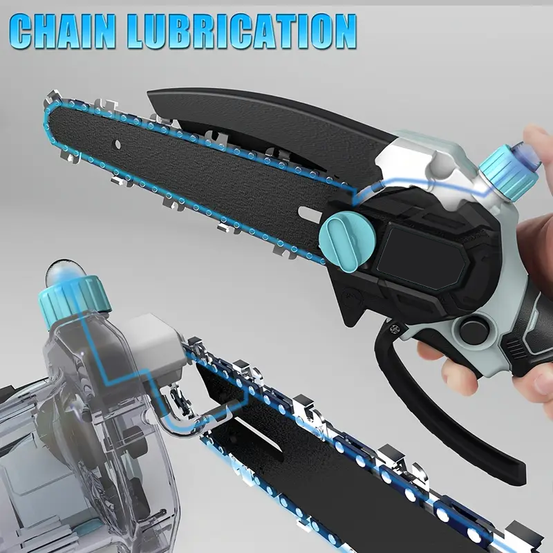 เลื่อยขนาดเล็กไร้สายขนาด6นิ้ว, เครื่องตัดกิ่งไฟฟ้าแบบมือถือน้ำหนักเบาพร้อมล็อคความปลอดภัยโซ่หล่อลื่น