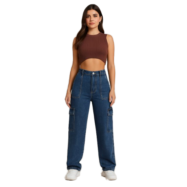 Waist Type: High Waist, Fabric: Stretch Denim (Cotton + Stretch Denim), Length: Full Length (Approx. 40 inches), Closure Type: Zipper Fly with Metal Button, Pattern Type: Solid / Plain, Stitching: Double-Needle Durable Stitch, Details: Clean Look / Minimalist Finish / Premium Thread Work, Fabric Features: Soft Stretch, Eco-Friendly, Durable, Breathable, Wash Type: Enzyme Wash / Soft Finish, Usage: Casual Wear, Street Style, Daily Comfort, Pocket Type: 6-Pocket Classic Design, Fit Type: 6 Pocket Denim Cargo Jeans