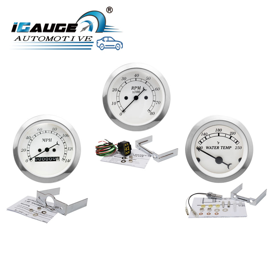 มาตรวัด6ชุดพร้อมมาตรวัดความเร็วทางกล KMH แบบคลาสสิกหน้าปัดสีขาวเข็มสีดำปรับเปลี่ยนรถแบบสากล