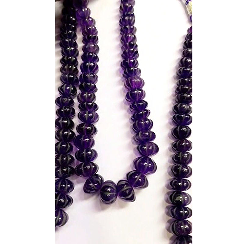 6เส้นของอเมทิสต์ธรรมชาติเรียบ14-16มม. ลูกปัดแตงรอนเดลขนาด3160 CTS อัญมณีแกะสลักขนาด16นิ้ว $222สำหรับทุกคน