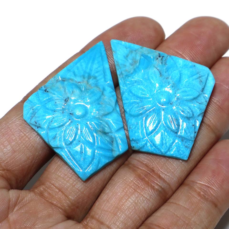 45X28MM ขนาด60กะรัตสีเทอร์ควอยซ์จากธรรมชาติอาริโซน่าแกะสลักดอกไม้สีเทอร์ควอยซ์