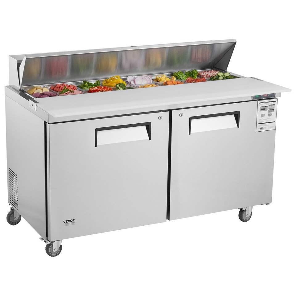 ตู้เย็นสแตนเลสเชิงพาณิชย์ขนาด 60 นิ้ว โต๊ะเตรียมอาหารแซนด์วิชและสลัด ความจุ 16.4 คิว อุปกรณ์ทำความเย็นสำหรับครัวเชิงพาณิชย์