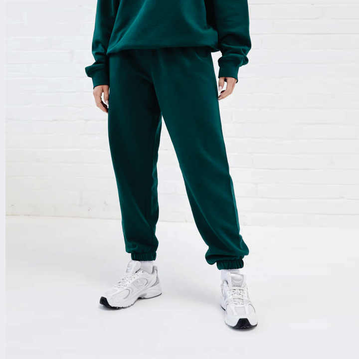 ชุดวอร์มสำหรับผู้หญิงผ้าคอตตอน40% ผ้าโพลีเอสเตอร์ยืดได้กระชับผ่อนคลายพอดีตัวกางเกงวิ่งจ็อกเกอร์ไม้สนสีเขียว60%