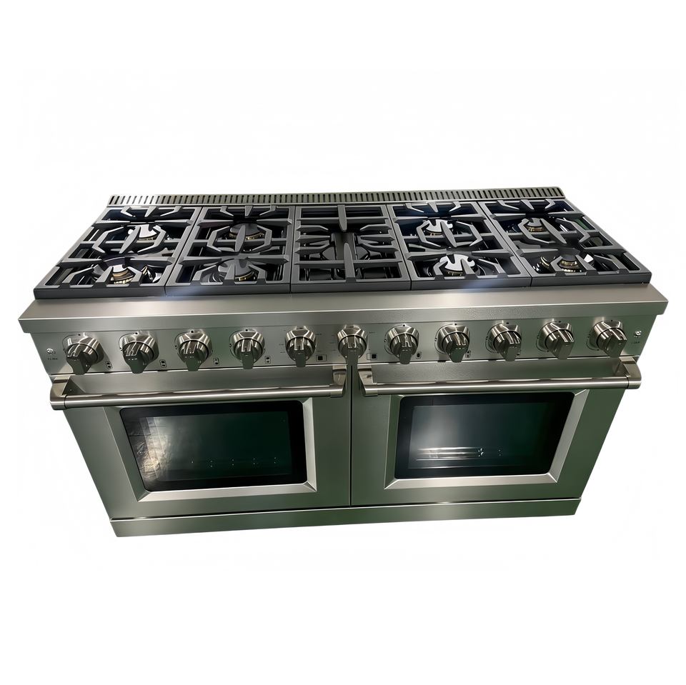 เตาอบไฟฟ้าแบบตั้งพื้นขนาด 60 นิ้ว พร้อมเตาย่าง 9 หัวเตา ตะแกรงเหล็กหล่อพร้อมภายในเชื่อมต่อไร้รอยต่อทำจากสแตนเลส