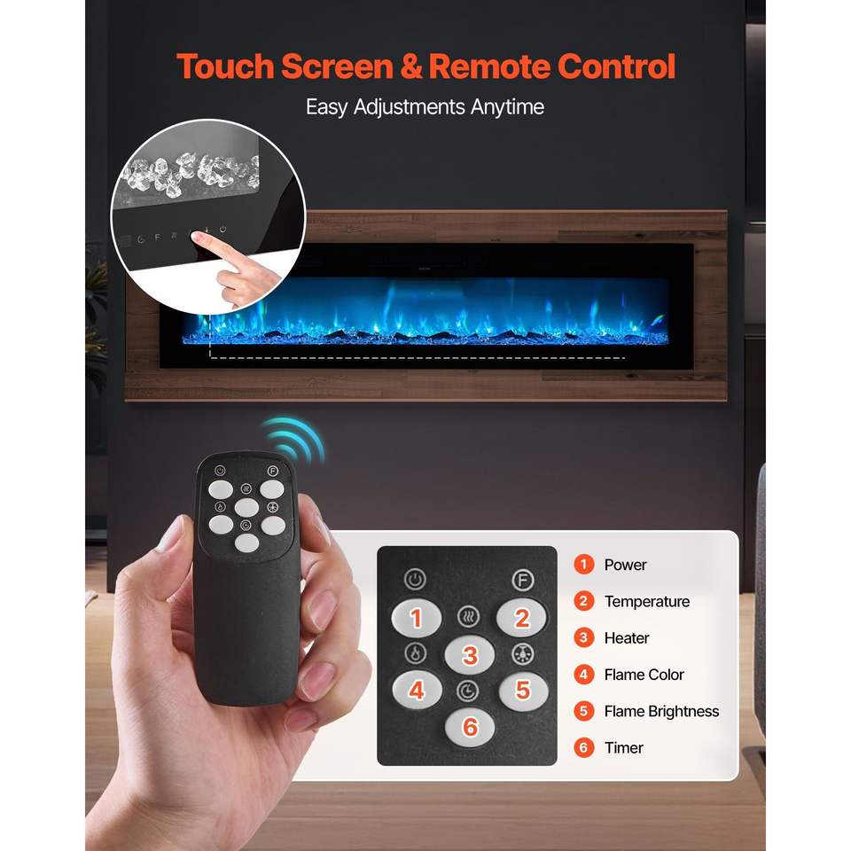เตาผิงไฟฟ้าติดผนังแบบฝังขนาด 60 นิ้ว 1500 วัตต์ ปรับเปลวไฟได้ พร้อมรีโมทคอนโทรล ตั้งเวลาได้ และปรับความสว่างสีได้
