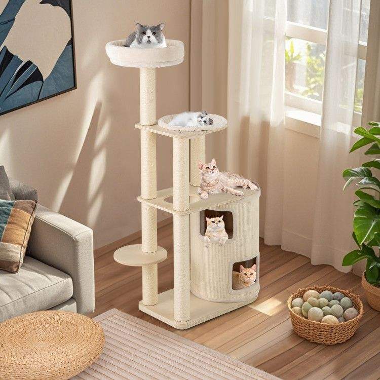 60-Inch Tall 2-Story Condo Cat Tree with Sisal Scratching Posts