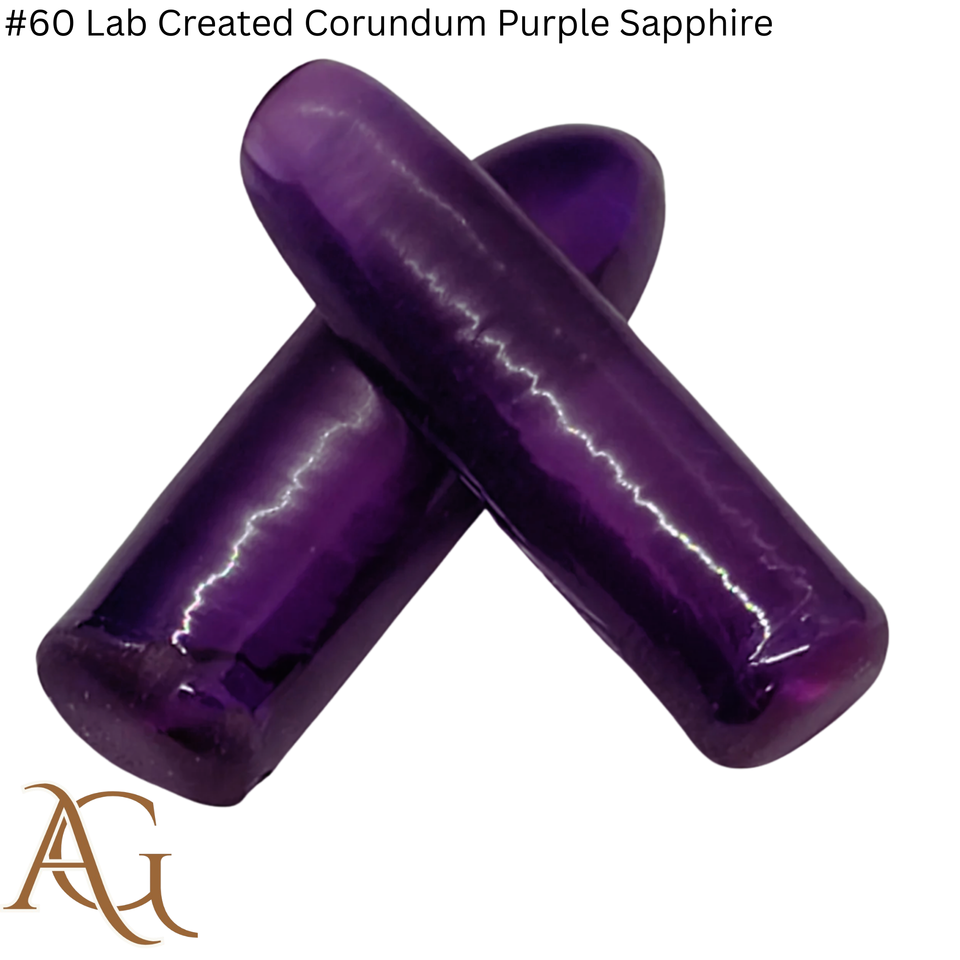 # พลอยแซฟไฟร์สีม่วงคอรันดัมสังเคราะห์ 60 เม็ด ผลิตด้วยวิธี Flame Fusion สำหรับการเจียระไนพลอยจำลอง