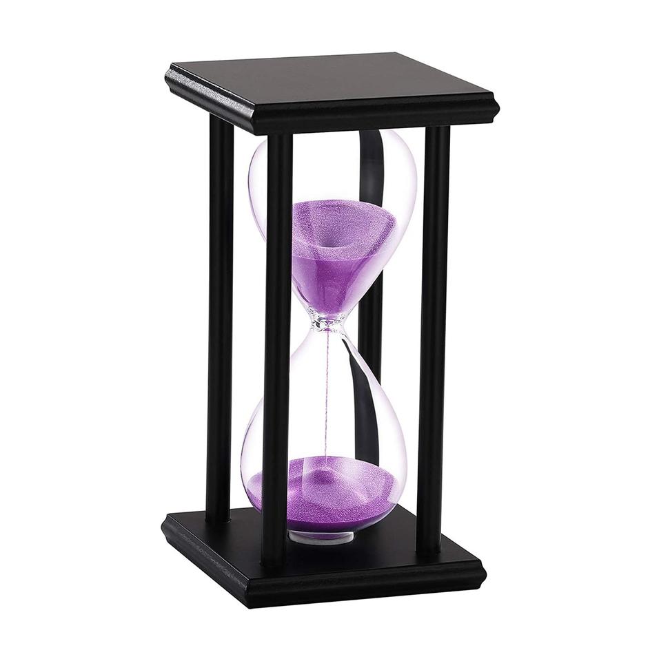 นาฬิกาทรายตั้งโต๊ะไม้สีดำ60นาทีพร้อมนาฬิกาทรายสีม่วงนาฬิกาทรายขนาดใหญ่60นาทีนาฬิกาทรายแก้วแบบตั้งโต๊ะหนึ่งชั่วโมงที่ไม่เหมือนใครสำหรับบ้าน