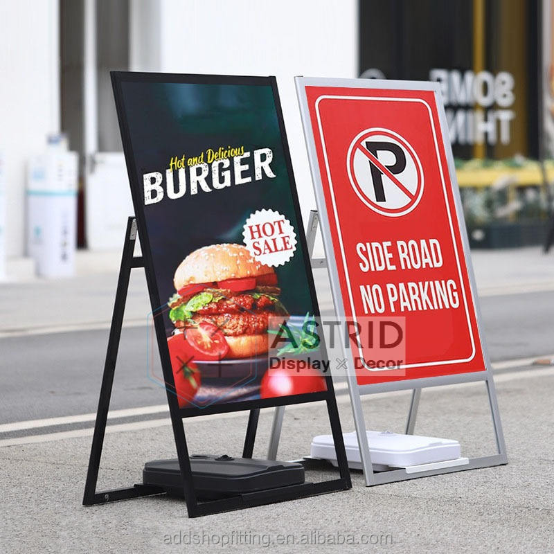 ที่แขวนป้ายตั้งพื้นทำจากโลหะอะลูมิเนียมแท้ขนาด60x90ซม. สำหรับร้านขายเสื้อผ้า