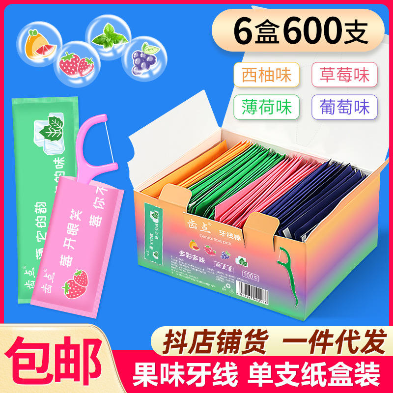 600 Individually Wrapped Dental Flossers Fruit-Flavored Multi-Colored High-Tensile Fine Floss Single Cardboard Box Dropshipping