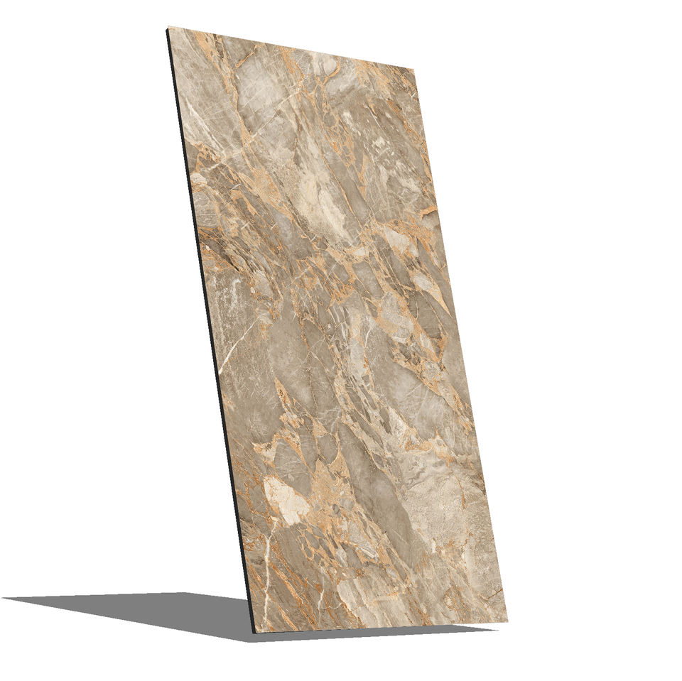 กระเบื้องเคลือบผิวเต็มแผ่นลายหินอ่อนสไตล์ยุโรปสมัยใหม่ ขนาด 600 x 1200 มม. สีทอง พร้อมคุณสมบัติทนไฟ