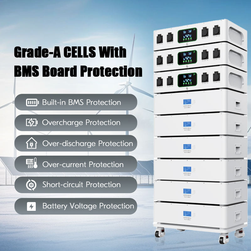 แพ็กแบตเตอรี่ลิเธียมพลังงานแสงอาทิตย์10.24kwh 6000 + ครั้งระบบพลังงานแสงอาทิตย์แบตเตอรี่เก็บพลังงาน LiFePO4 102.4 V