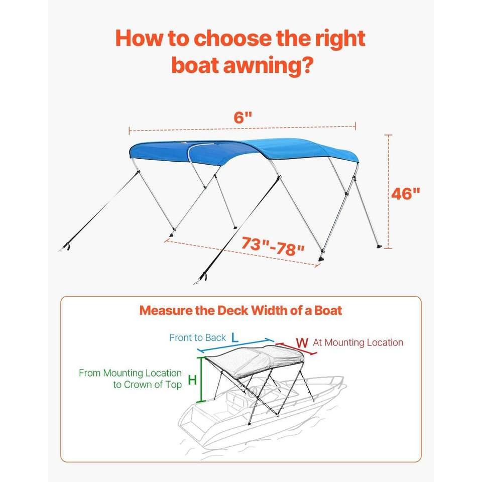 หลังคาบิมินิสำหรับเรือ 3 โค้ง ทำจากโพลีเอสเตอร์ 600D กันน้ำ ป้องกันแสงแดด พร้อมโครงอะลูมิเนียมอัลลอยด์ และผ้าคลุมเก็บของ
