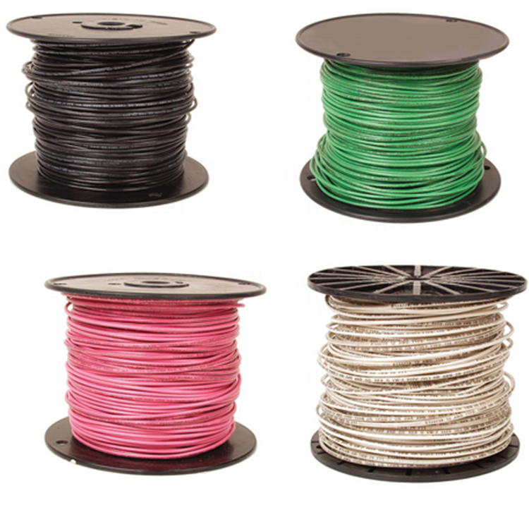 ตัวนำทองแดง600V สายไฟฟ้าหุ้มฉนวนพีวีซีสาย THW #12, #10, #8, #6, #1/0, #2/0 #4/AWG จะเต็มไปด้วย100ม./ม้วนหรือกลองไม้หรืออื่นๆ