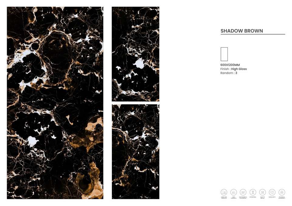 กระเบื้องพอร์ซเลนเคลือบเงาพรีเมียม ขนาด 600x1200 มม. สีน้ำตาลเงา