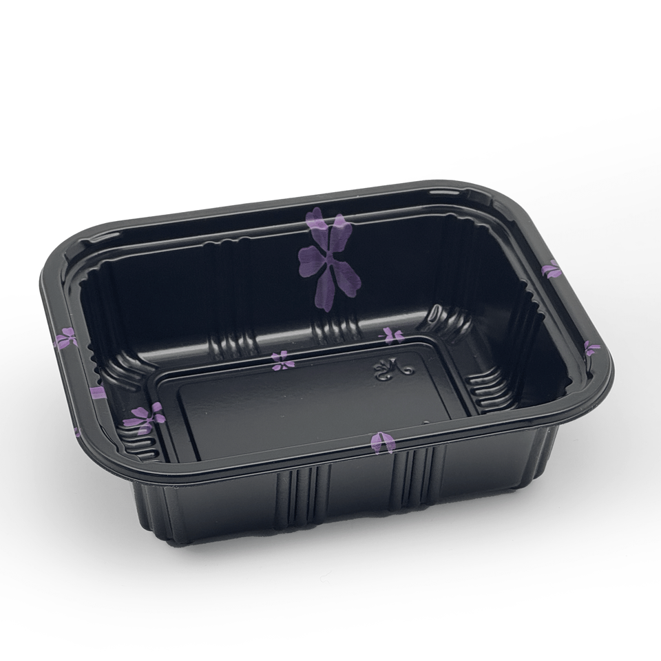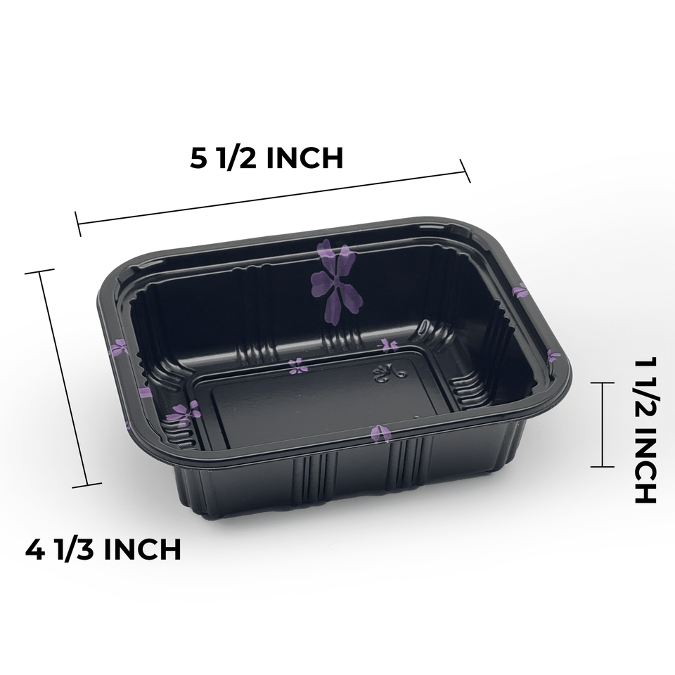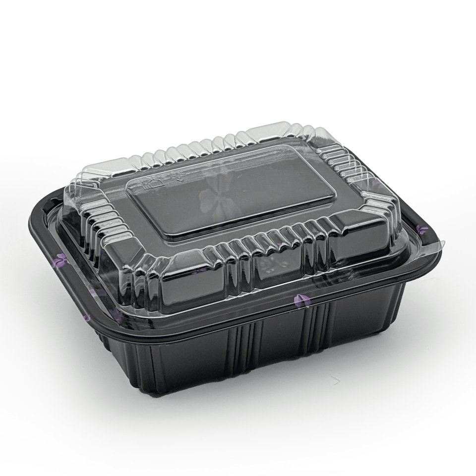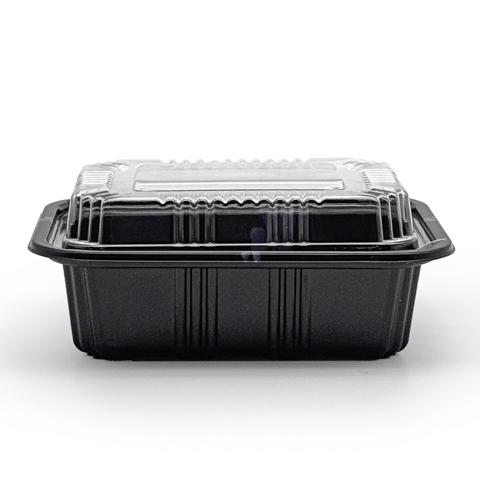 กล่องพลาสติกใส่อาหารทรงสี่เหลี่ยมผืนผ้าพร้อมฝาปิด สีดำ ขนาด 5 1/2 x 4 1/3 นิ้ว จำนวน 600 ชิ้น