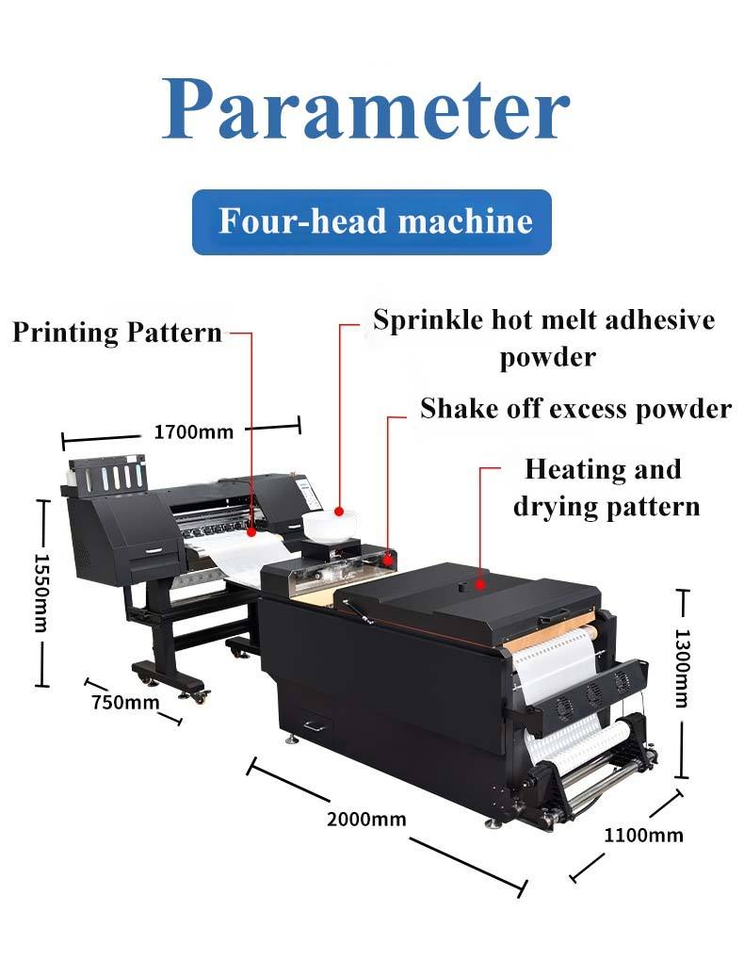 เครื่องพิมพ์ DTF ขนาด 600 มม. สำหรับเสื้อยืดและเครื่องเขย่าผ้าสำหรับเสื้อผ้าและชุดเดรส