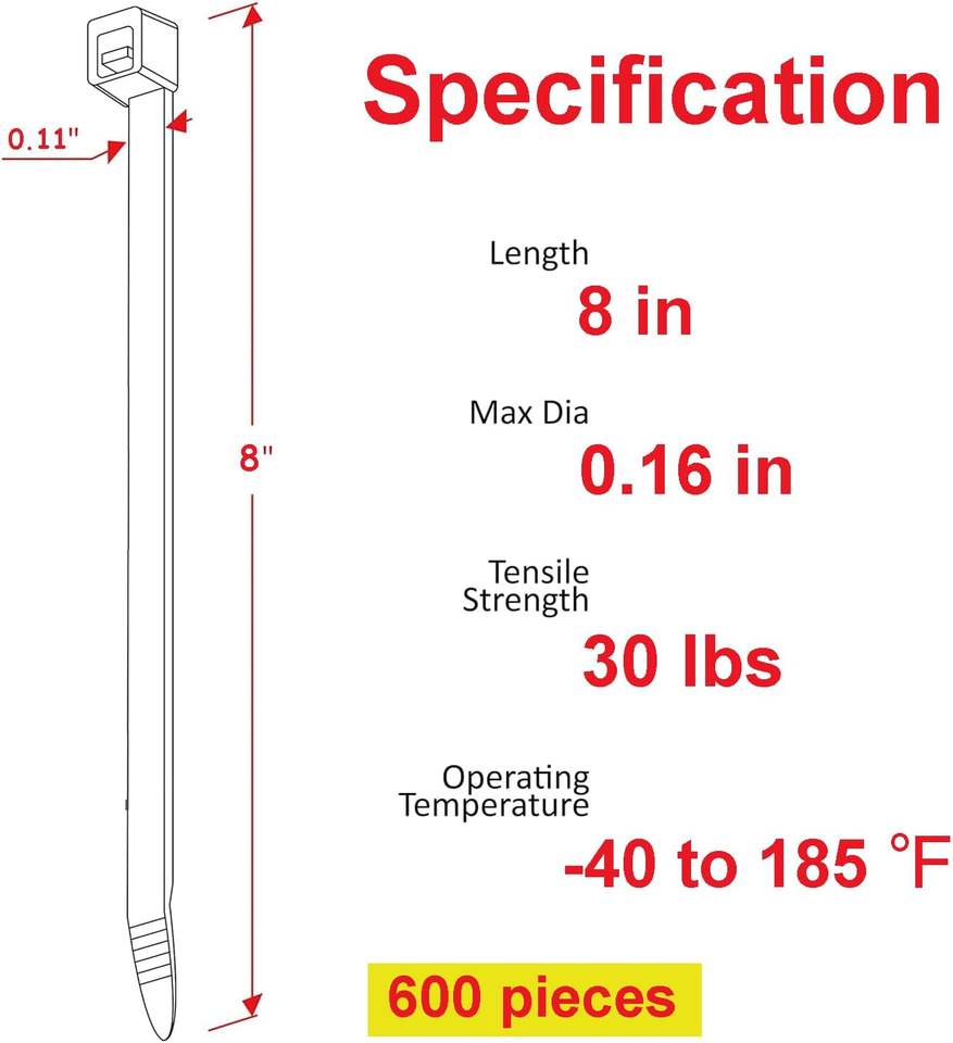 สายรัดเคเบิลแบบล็อคอัตโนมัติ BAGLEADER สีแดง ขนาด 8 นิ้ว จำนวน 600 ชิ้น สำหรับจัดการสายเคเบิลอเนกประสงค์ในสำนักงาน