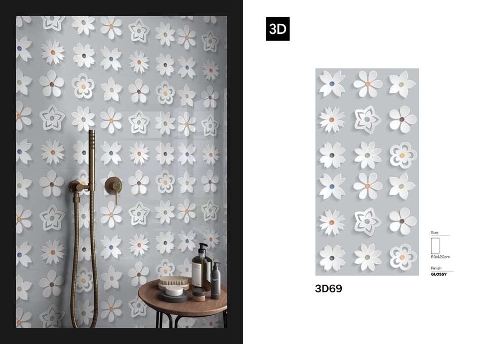 กระเบื้องพอร์ซเลนเคลือบเงาพรีเมียม ดีไซน์ 3 มิติ ขนาด 600x1200 รุ่น 3D69