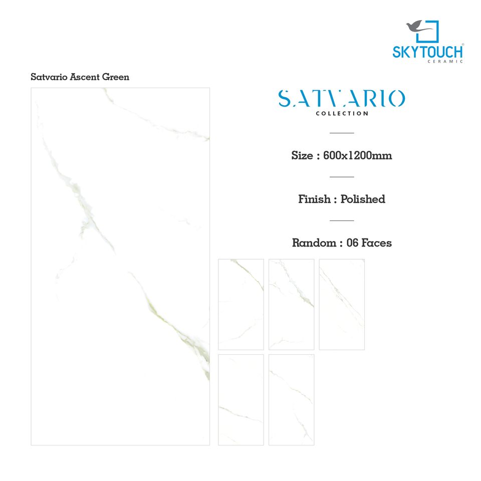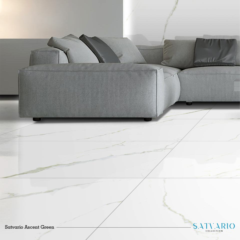 กระเบื้องปูพื้นเซรามิกพอร์ซเลนสีขาว Satvario Ascent Glaze ขนาดใหญ่ 600x1200 มม. (60x120 ซม.) ไม่แตกหัก เหมาะสำหรับห้องนั่งเล่น