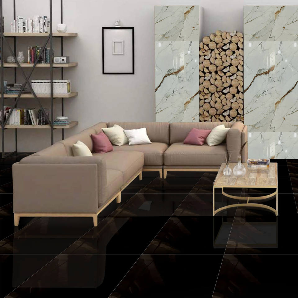 กระเบื้องพอร์ซเลนเคลือบเงาทั้งตัวขนาด600x1200มม. ดีไซน์ทันสมัยพื้นหินอ่อนมันวาวสูง