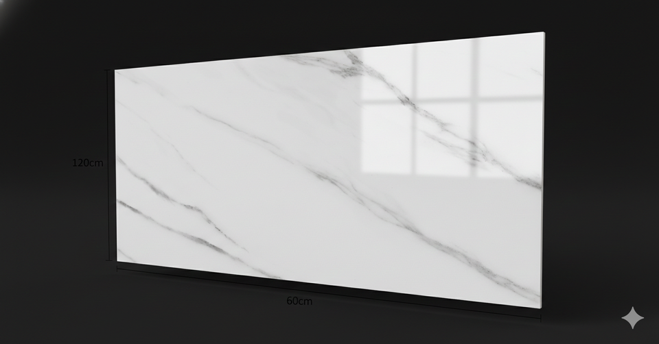 กระเบื้องพอร์ซเลนลายหินอ่อนสีขาว GVT PGVT ขนาด 600x1200 มม. / 60x120 ซม. / 24x48 นิ้ว (600x600 มม. และ 600x1200 มม.) สำหรับงานก่อสร้างและโครงการ