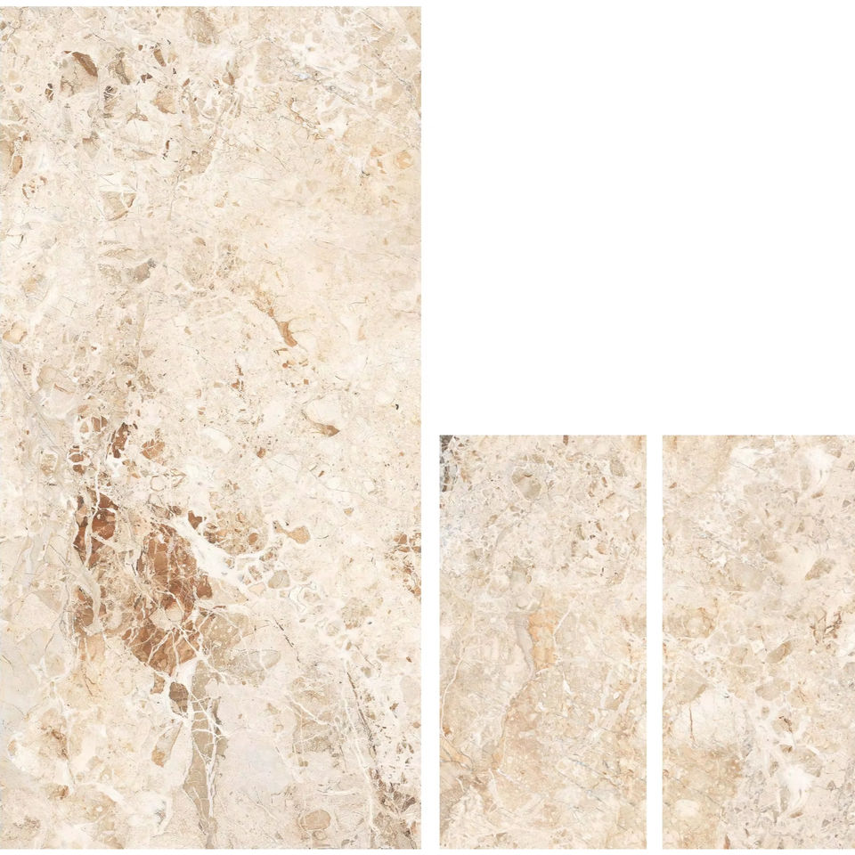 กระเบื้องพอร์ซเลนเซรามิกเคลือบเงาขนาด600x1200มม. ทันสมัย Earth Breccia Crema พื้นผิวมันวาวกันลื่นสำหรับภายในห้องน้ำห้องวิลล่า