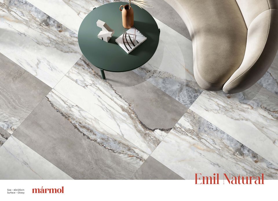 กระเบื้องพอร์ซเลนเคลือบเงา EMIL NATURAL ขนาด 600x1200 มม. สไตล์ยุโรปสมัยใหม่ ป้องกันการลื่น เหมาะสำหรับปูพื้นห้องน้ำภายในบ้านหรือวิลล่า