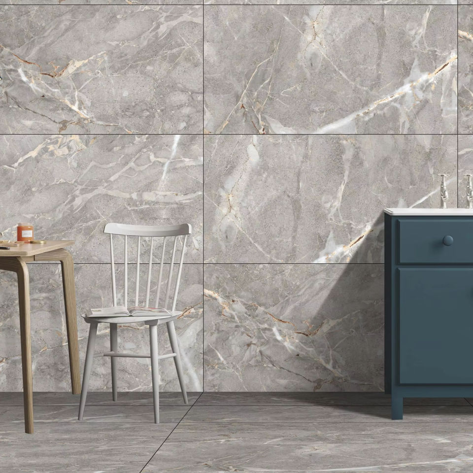 กระเบื้องพอร์ซเลนเคลือบเงา600x1200มม. ทันสมัยเนื้อแข็งเคลือบเงาสำหรับตกแต่งภายในห้องน้ำในห้างสรรพสินค้าพื้นต้านเชื้อแบคทีเรียสำหรับห้อง