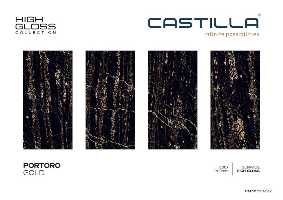 กระเบื้องพอร์ซเลน PORTORO GOLD ป้องกันการลื่น ทนทานต่อการสึกหรอ ดีไซน์ยุโรปสมัยใหม่ ขนาด 600x1200 มม. ผิวเงาสูง ขัดเงา แข็งแรง ทนทานต่อแบคทีเรีย