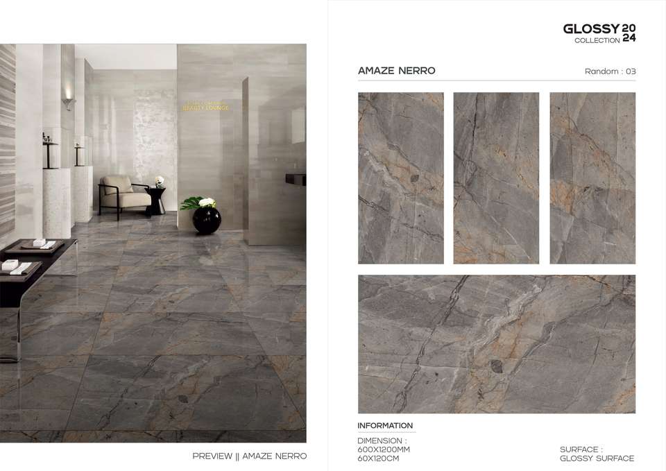 กระเบื้องพอร์ซเลนขัดเงาขนาด 600x1200 มม. ผิวมันเงาสูง สำหรับปูพื้นขนาดใหญ่ เหมาะสำหรับตกแต่งภายในบ้านและอาคารพาณิชย์สมัยใหม่