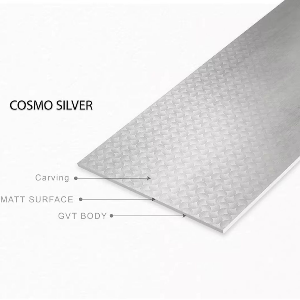 กระเบื้องพอร์ซเลนเนื้อแข็งกันลื่นลายแกะสลักสไตล์ยุโรปสมัยใหม่ COSMO SILVER ขนาด 600x1200 มม. ผิวด้าน เหมาะสำหรับห้องน้ำ บ้านพักตากอากาศ โรงเรียน และพื้นปู