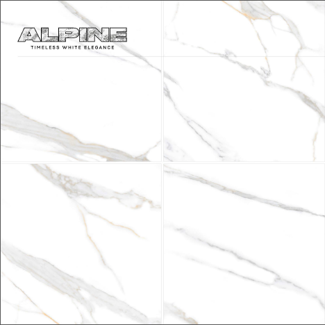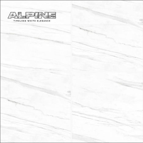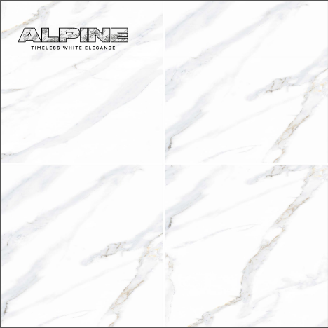 600x600mm Glossy Surface ALPINE Elegance Wall and Floor Marble Tiles Application by Novac Ceramic Model-VEGAS WHITE