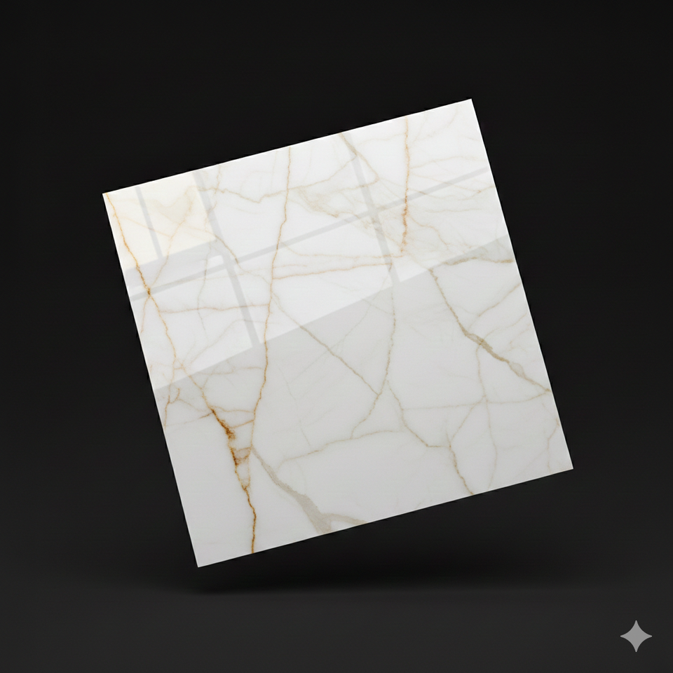 กระเบื้องพอร์ซเลนขนาด 600x600 มม. ลายหรูหรา Calacatta Gold ขนาด 600x1200 มม. ขัดเงา คุณภาพส่งออก B2B หินอ่อนสีขาวเงา ดูดซับน้ำได้น้อยกว่า 0.5%