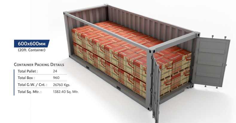 CARTOON(Box) PACKING & WOODEN PALLET PACKING WITH SAFETY AIRBAGS,Each box of tiles are packed in a Cartoon and then each box is Shrinked wrapped to ensure safety of the material.Then these boxes are loaded on the pre designed EURO/Standard Pallets, secured heavily with Plastic straps.Pallets are protected against moisture by wrapping of transparent shrinkable plastic film.The container stuffing is also done in the presence of experienced personnel, to ensure best stuffing and maximum material can be loaded.