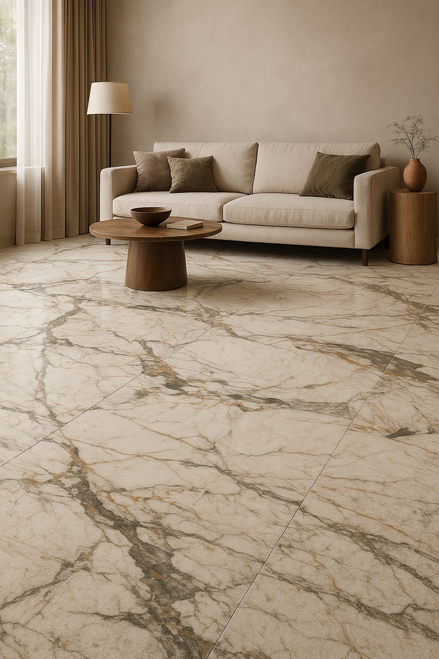 กระเบื้องพอร์ซเลนลายหินอ่อนสีขาวและสีเทาแบบชนบทขนาด600x600มม. เนื้อหินธรรมชาติพร้อมกระเบื้องหลอดเลือดดำสีน้ำตาลอ่อนแบบอินเดีย