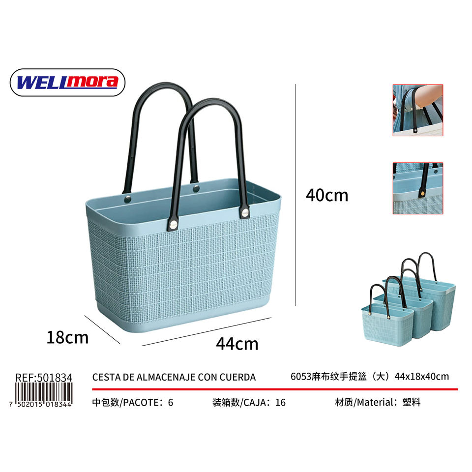 ตะกร้าลายผ้าลินิน WELImora ขนาด 44x18x40 ซม. กล่องเก็บของพลาสติกสำหรับจัดระเบียบบ้าน
