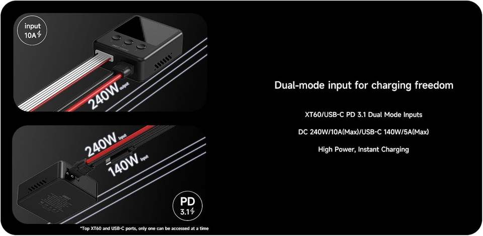 เครื่องชาร์จแบตเตอรี่ลิเธียมโพลิเมอร์ 608PD พร้อมฟังก์ชั่นปล่อยประจุ PD 140W DC 240W/10A รองรับการชาร์จแบบ Dual Mode สำหรับแบตเตอรี่ RC แบบสมดุลอัจฉริยะ 2~6S