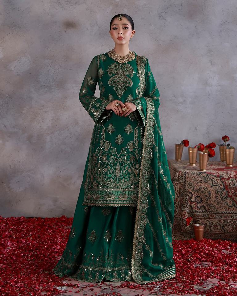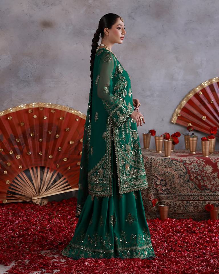 609 Beautiful Party Wear Viscose Mehndi Occasion Short Shirt with Sharara for Women by WS Pakistan