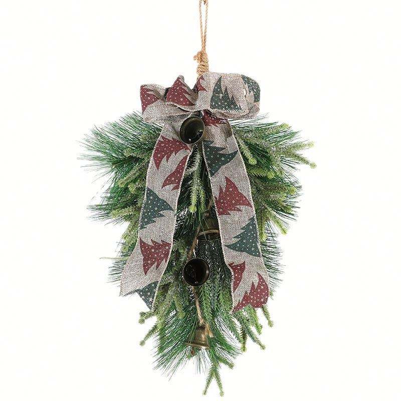 เข็มสนเทียม60ซม. ผสม PE แขวนกระดิ่งอเมริกันตกแต่งคริสต์มาสต้นไม้ติดผนังสีขาวเหนียวเหมือนกัน
